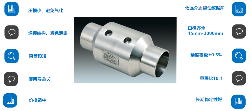 低溫流體通常以飽和狀態(tài)儲存在絕熱的儲存容器里。在轉運時,用泵升壓、送出,開始過程處理,并反復進行加壓、減壓。在此過程中,飽和狀態(tài)的極低溫流體一會兒變?yōu)檫^冷狀態(tài),一會兒變?yōu)榉序v狀態(tài),狀態(tài)容易變化。因此,流量計設計需要采取措施來避免或減輕此過程帶來的影響。