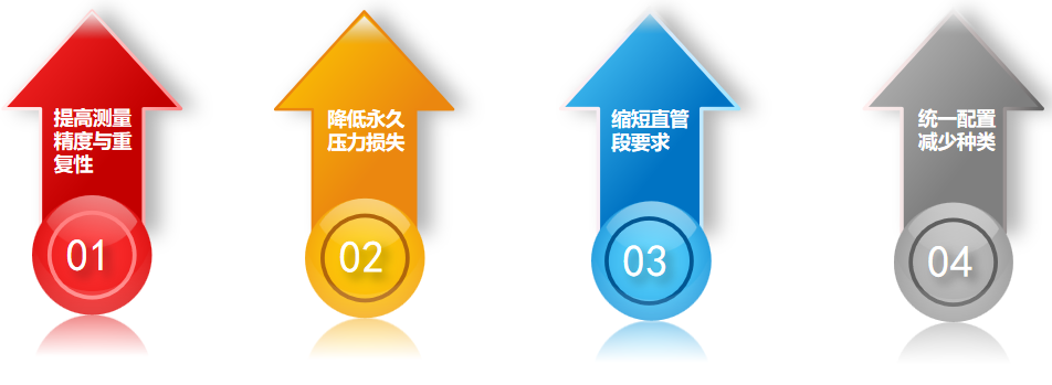 精度高 0.5% 直管段短 2D 壓損低 30%DP 量程比寬 7:1~10:1 重復(fù)性好 0.1% 適應(yīng)性廣 G\L\S 完美實(shí)現(xiàn)雙向流測(cè)量