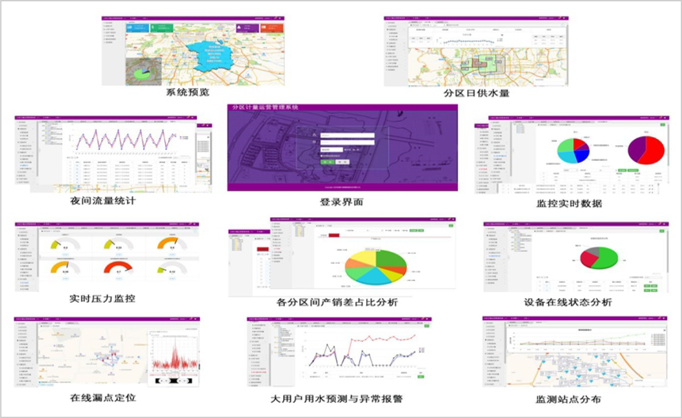 上??蒲舐┛毓芾硐到y(tǒng)應(yīng)用夜間最小流量,根據(jù)ALR理論,利用物聯(lián)網(wǎng),采用高端感知設(shè)備(例如A+k電磁水表、滲漏預(yù)警與漏點(diǎn)定位系統(tǒng))。漏控系統(tǒng)可在監(jiān)測到分區(qū)計(jì)量管理中的漏損區(qū)域后,快速預(yù)警到漏損管段。該系統(tǒng)是新一代信息技術(shù)與水務(wù)技術(shù)的深度融合,其充分發(fā)掘數(shù)據(jù)價值和邏輯關(guān)系,實(shí)現(xiàn)水務(wù)業(yè)務(wù)系統(tǒng)的控制智能化、數(shù)據(jù)資源化、管理精確化、決策智慧化,保障水務(wù)設(shè)施安全運(yùn)行,使水務(wù)業(yè)務(wù)運(yùn)營更高效、管理更科學(xué)和服務(wù)更優(yōu)質(zhì)。同時該系統(tǒng)可與水司已有營收系統(tǒng)、GIS系統(tǒng)、SCADA系統(tǒng)、水力模型等系統(tǒng)兼容,或納入水司綜合信息管理平臺,助力水司智慧水務(wù)建設(shè)。