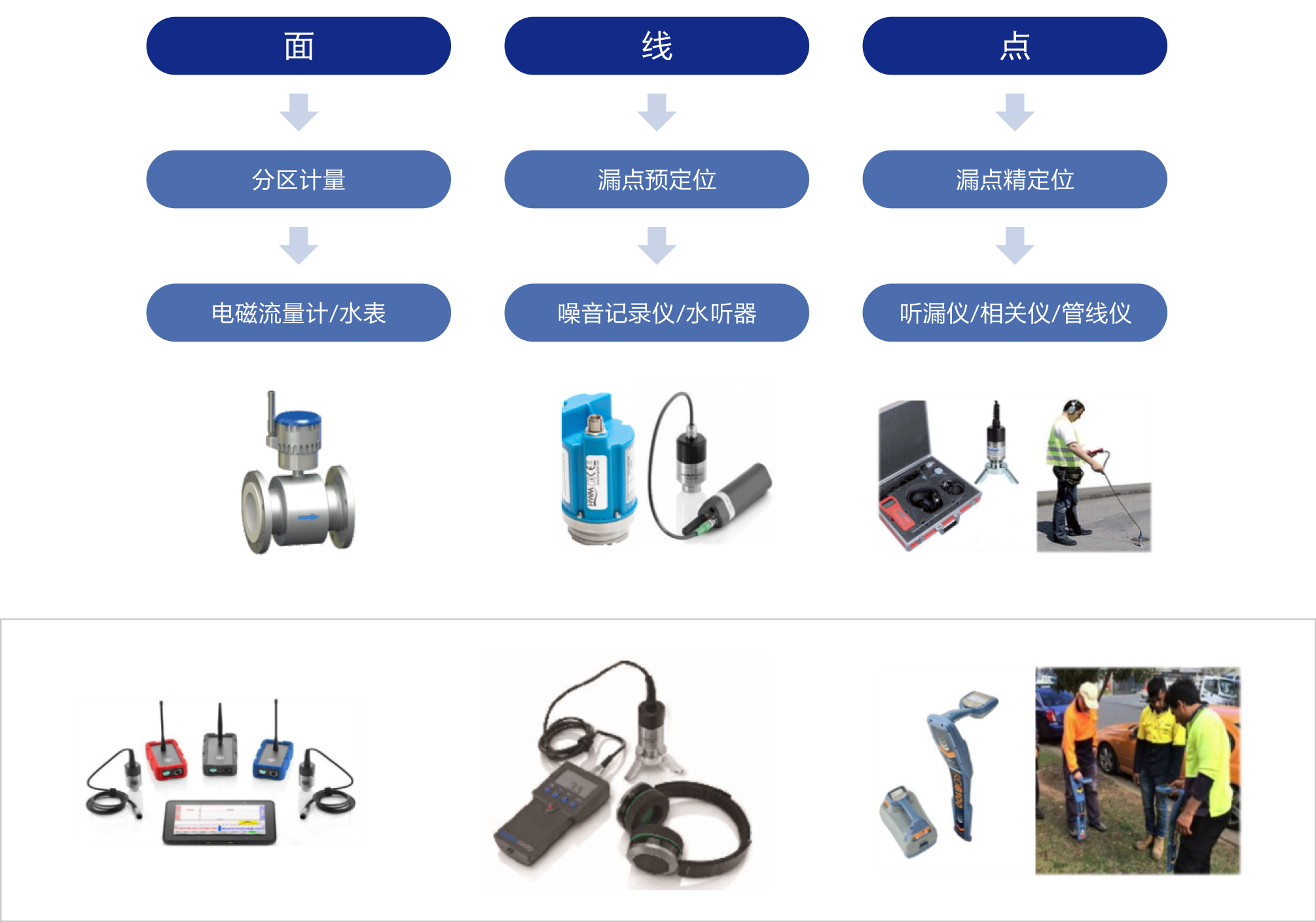 3、提供漏控所需基礎(chǔ)硬件(電磁水表/流量計(jì)、漏點(diǎn)定位設(shè)備);